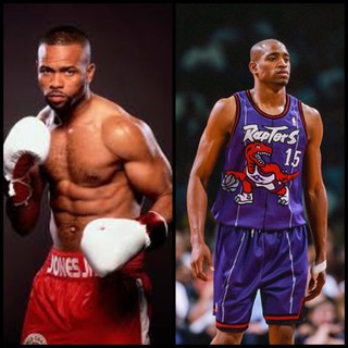 Roy Jones Jr and Vince Carter are mirror images of each other. Jones was a better boxer than Vince Carter was a basketball player but the similarities are definitely there. We have never seen the combination of speed, size, quickness, defense, and punching power like we did with Roy Jones Jr. He was technically sound but overwhelmed his opponents with his athleticism. Vince Carter is considered the best dunker of all time by most NBA fans while also being a great shooter, finishing his career in the top ten in three point field goals made. In Carter's prime he could float in the air like Michael Jordan while also dunking with the power of Dominique Wilkins. Both Carter and Jones stayed in their sport passed their primes but fans will remember them as the athletic freaks they were.